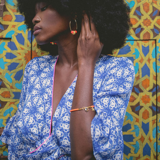 BEADED CIRQUE HOOPS - NEON ORANGE