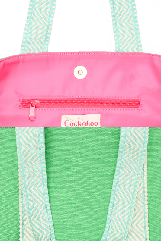 SMALL | KIDS BRIGHT GREEN BEACH BAG with TURQUOISE STRAPS