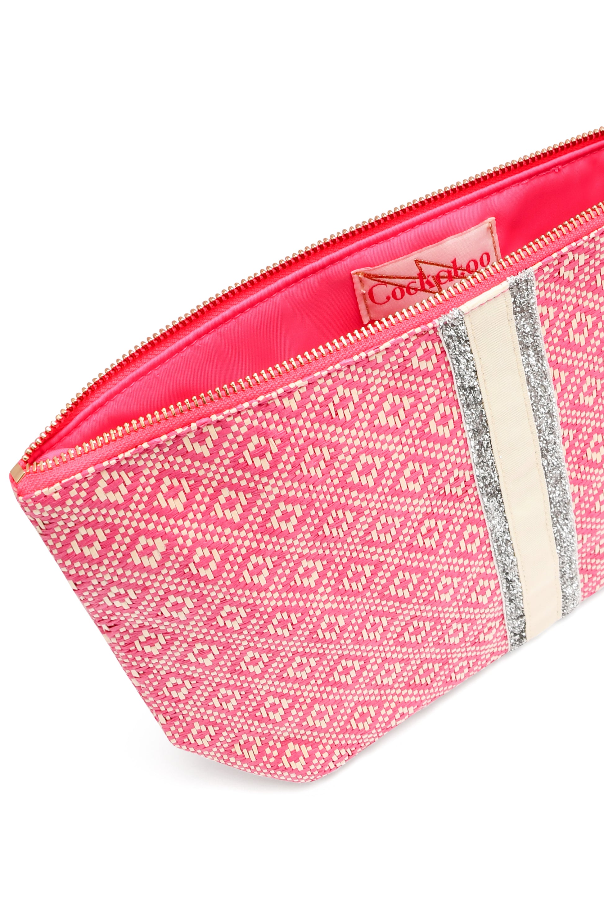 A radiant twist on summer luxury, this gorgeous bag with Cockatoo's signature Silver glitter stripe and quality craftmanship, is the go-to choice to transport your favourite makeup and goodies for a weekend away or perfect as a clutch bag for a night out.