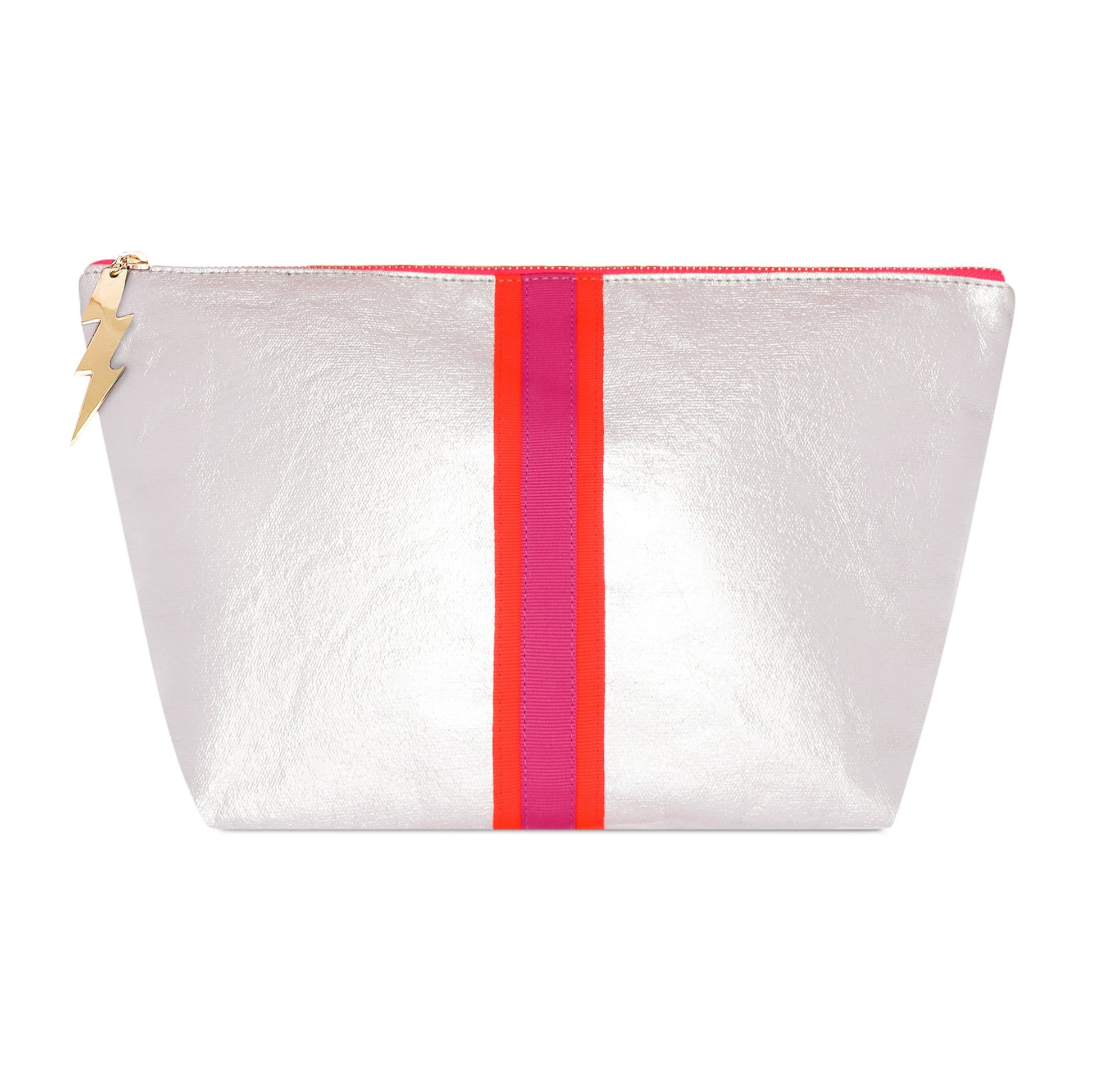 In a lustrous silver fabric and gorgeous stripe, this is a super popular bag - ideal for the D-I-S-C-O!