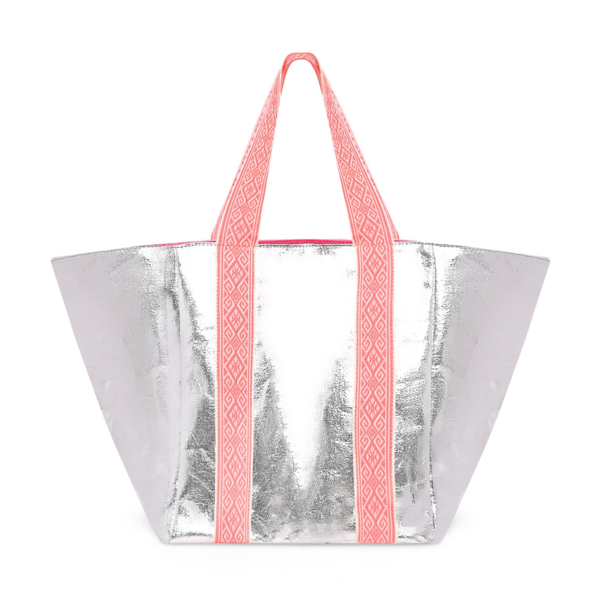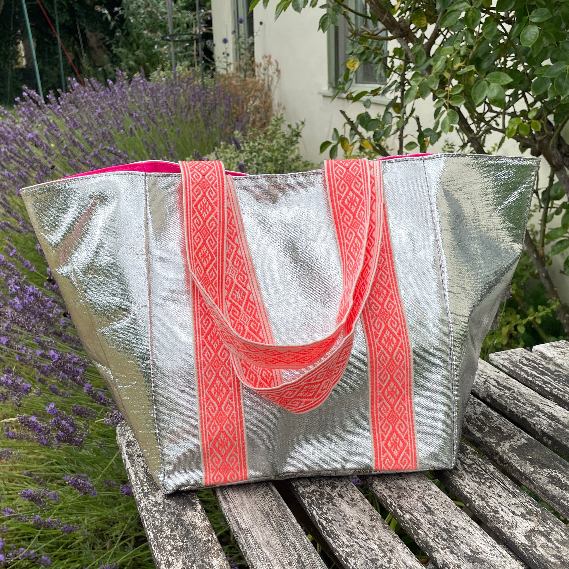 All Cockatoo beach bags are fully lined in hot pink water resistant fabric, they also have an internal zipped up pocket and a gold magnetic popper, and on one side of the bag the straps aren't sewn down all the way so you can slip your wet towel or sarong through so everything else inside the bag doesn't get soggy!